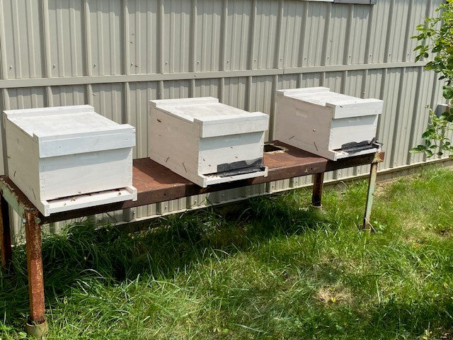 Complete hive ready to put in your garden in new equipment. 2026 queen, lots of brood, lots of stores. Queen has a great laying pattern. They are ready to pollinate your garden or vegetable crop. Some frames will be new and some a few years old. You can pay here to reserve you single and it will be ready to pick up in late May to early June. This item is for pickup only. The hive will be just as shown in the photo. There are 9 frames and one internal feeder. These colonies are larger than a nuc and already in 10 frame equipment. The top lid of the hive is a commercial migratory lid. Paint is an exterior oil based primer. This is a nice way to start an apiary. You only need to add honey supers as the honeyflow progresses.